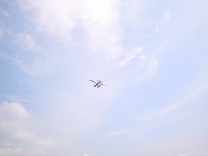 Airplane flying through the clouds