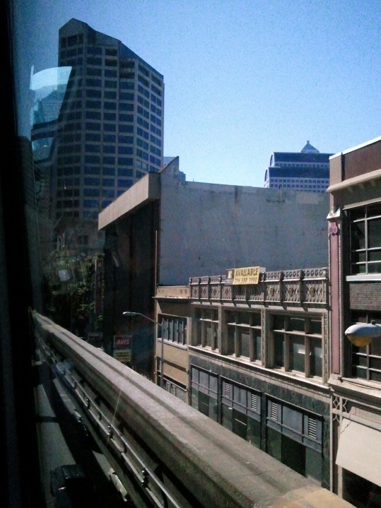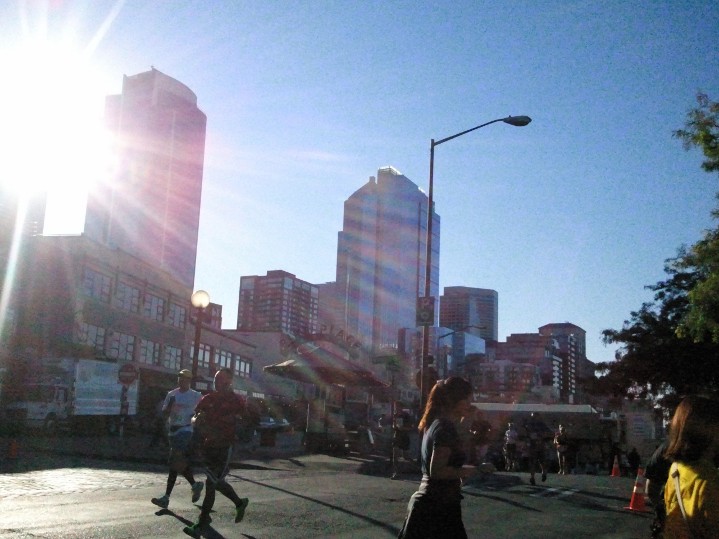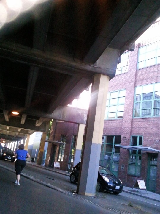 I usually walk my races, which is cool because it allows me to take pictures. This time around I did a mix of walk and jog, but still could take some pictures of urban Seattle, including some unusual ones, like the one of people jogging on a tunnel that is typically meant for cars…