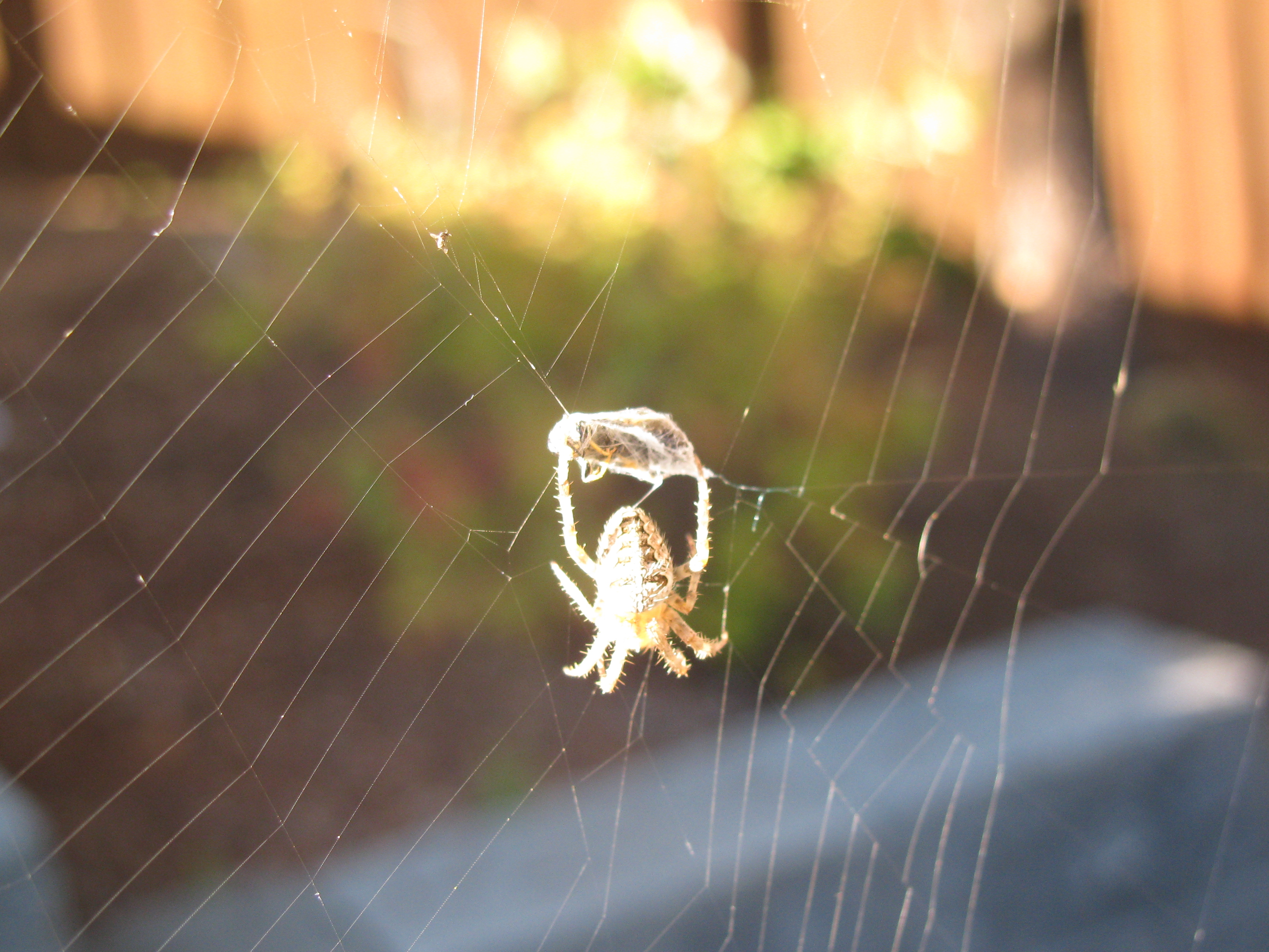 Yesterday I took my daughter to the playground at our community and we saw a spider wrapping up a bug on it’s web.