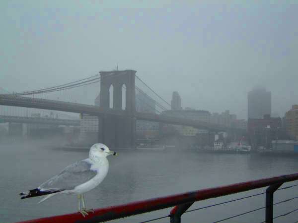 One day, when we were walking along the Brooklin Bridge, I saw a seagull resting at a rail and couldn’t resist taking the picture.