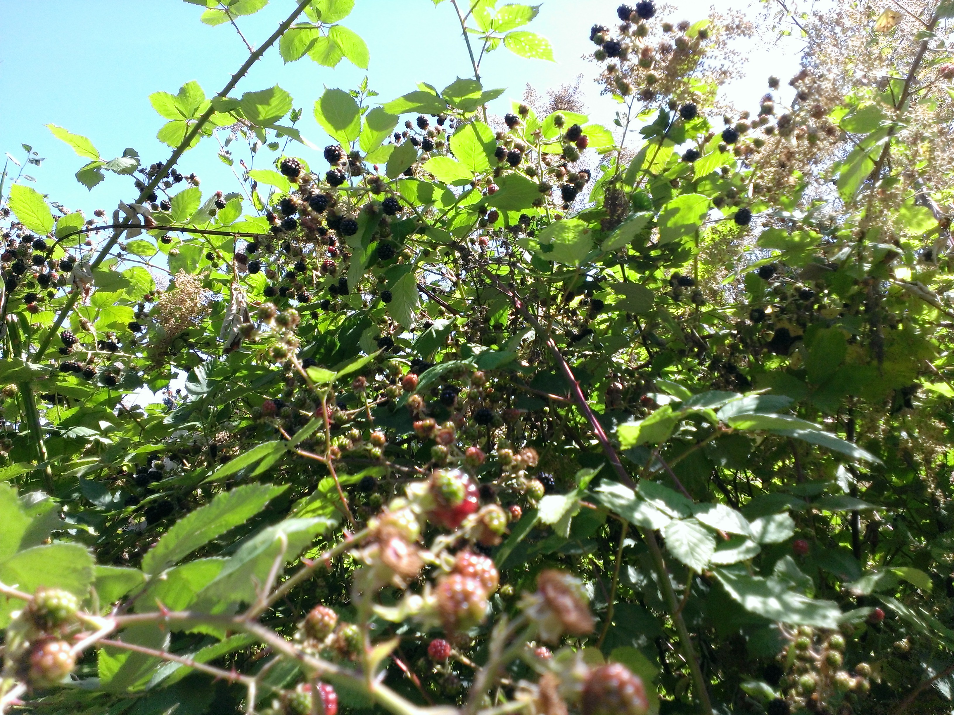 Because the trail was FULL and I really mean FULL of blackberries everywhere. Yummy, plump, sweet, tart and delicious blackberries.