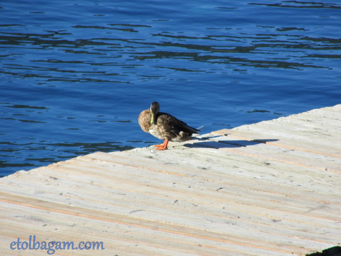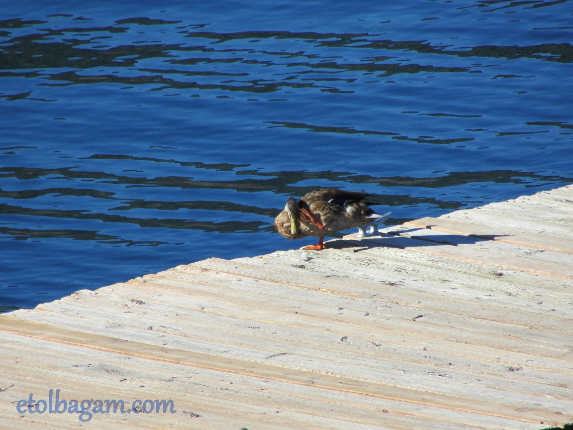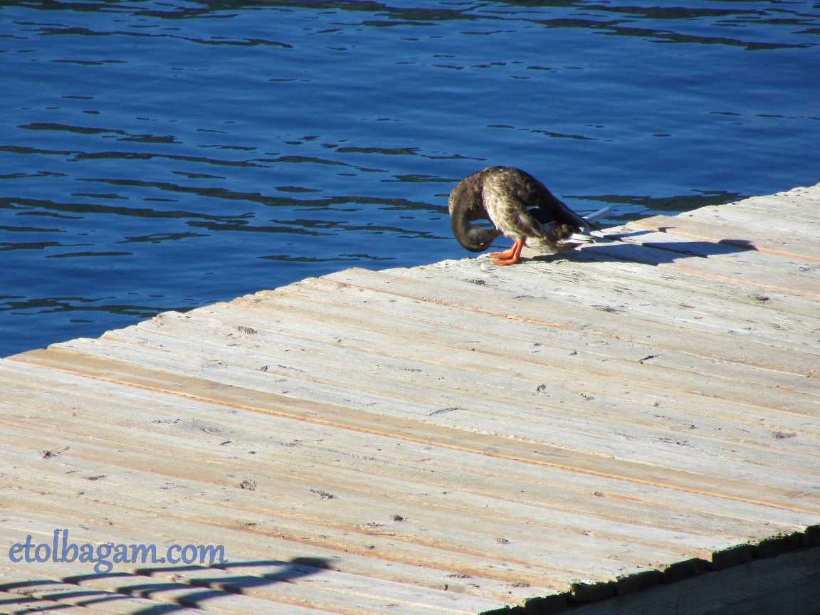 Saturday morning, when I woke up and went to the balcony, I saw a duck on the deck having his cleaning morning routine.