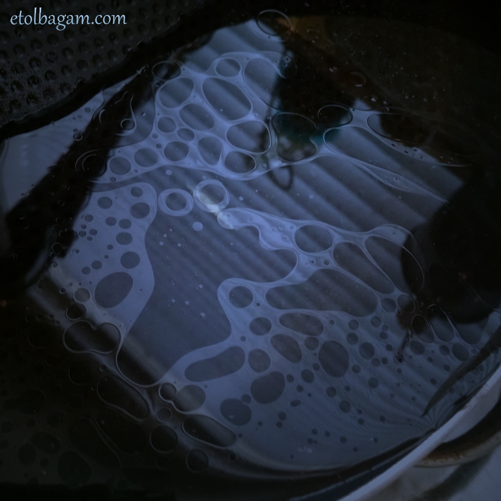 Sometimes I take pictures of odd stuff, and a few months ago I liked the pattern of the fat in the water when washing a frying pan, so I grabbed my camera and snapped a picture of it.